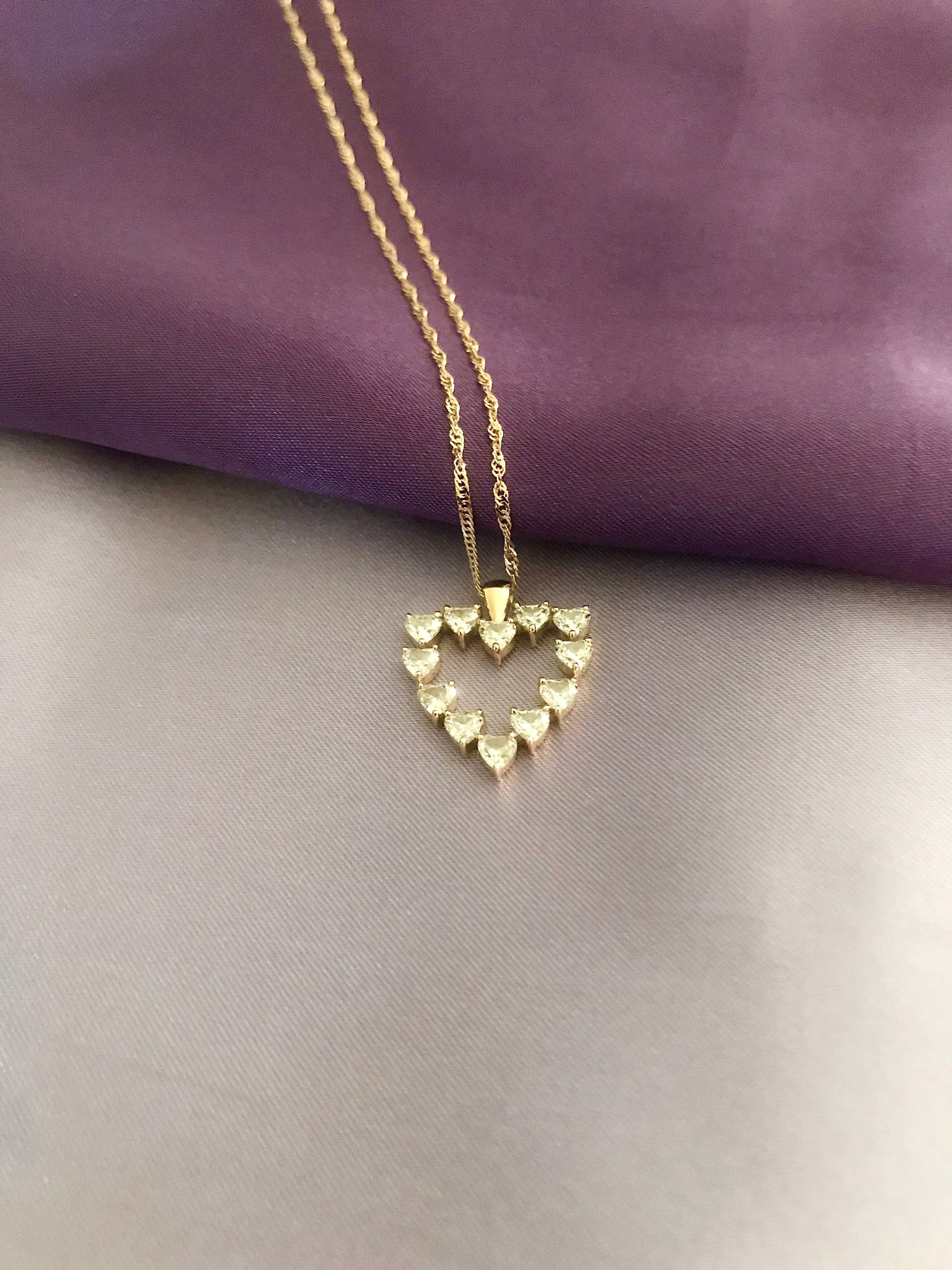 12 heart-shaped diamonds of approximately 0.12 carats each for a total of 1.44 carats of diamond weight